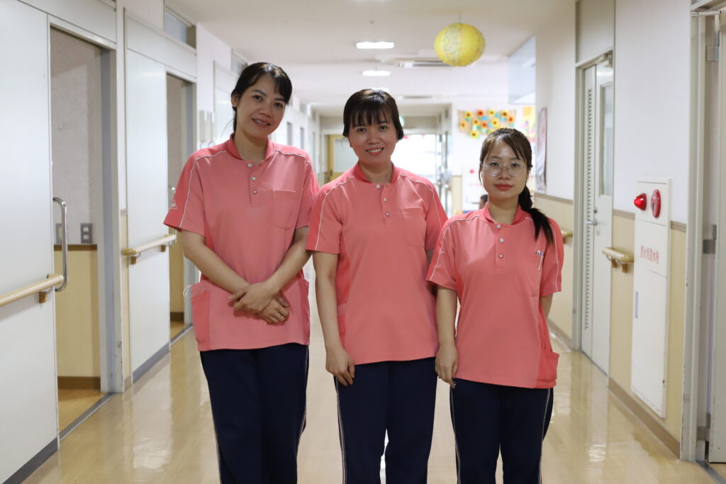 現在は、三人とも介護福祉士の資格取得を目指しています。日本で長く働くためにも、これからもスキルを磨いていきたいです。